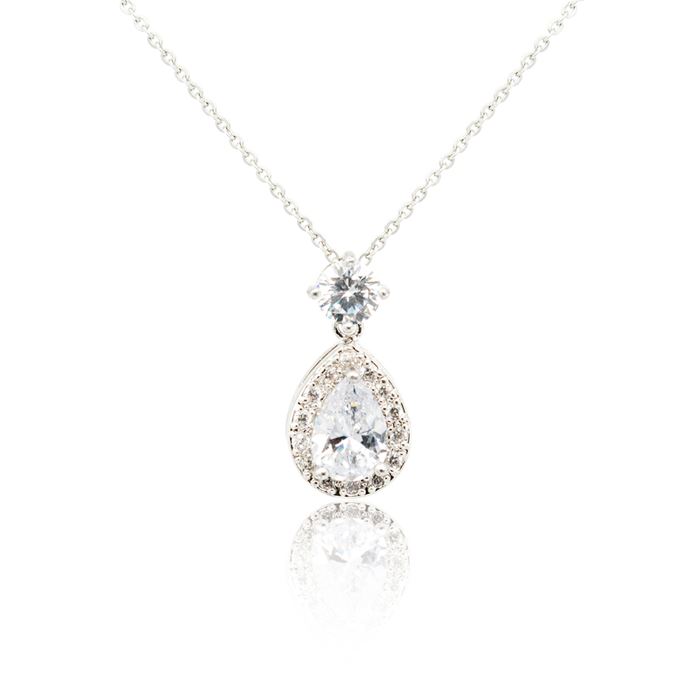 שרשרת יהלום מרכזי בחיתוך טיפה בתוספת יהלומים קטנים