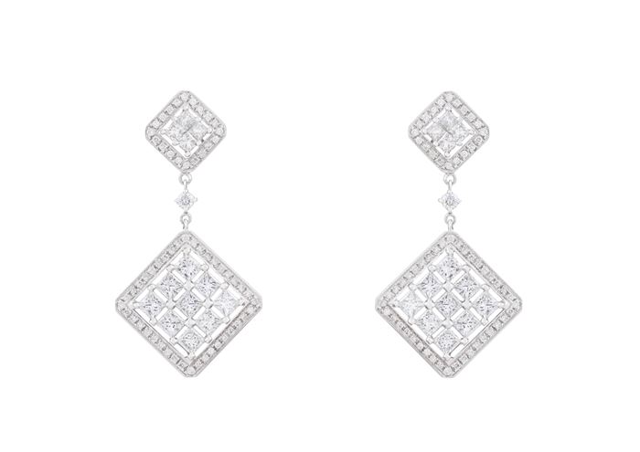 עגילי יהלומים 2 מעוינים משובצים יהלומים