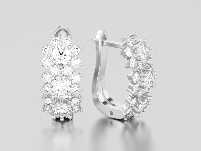 עגילי 3 פרחים משובצים יהלומים.